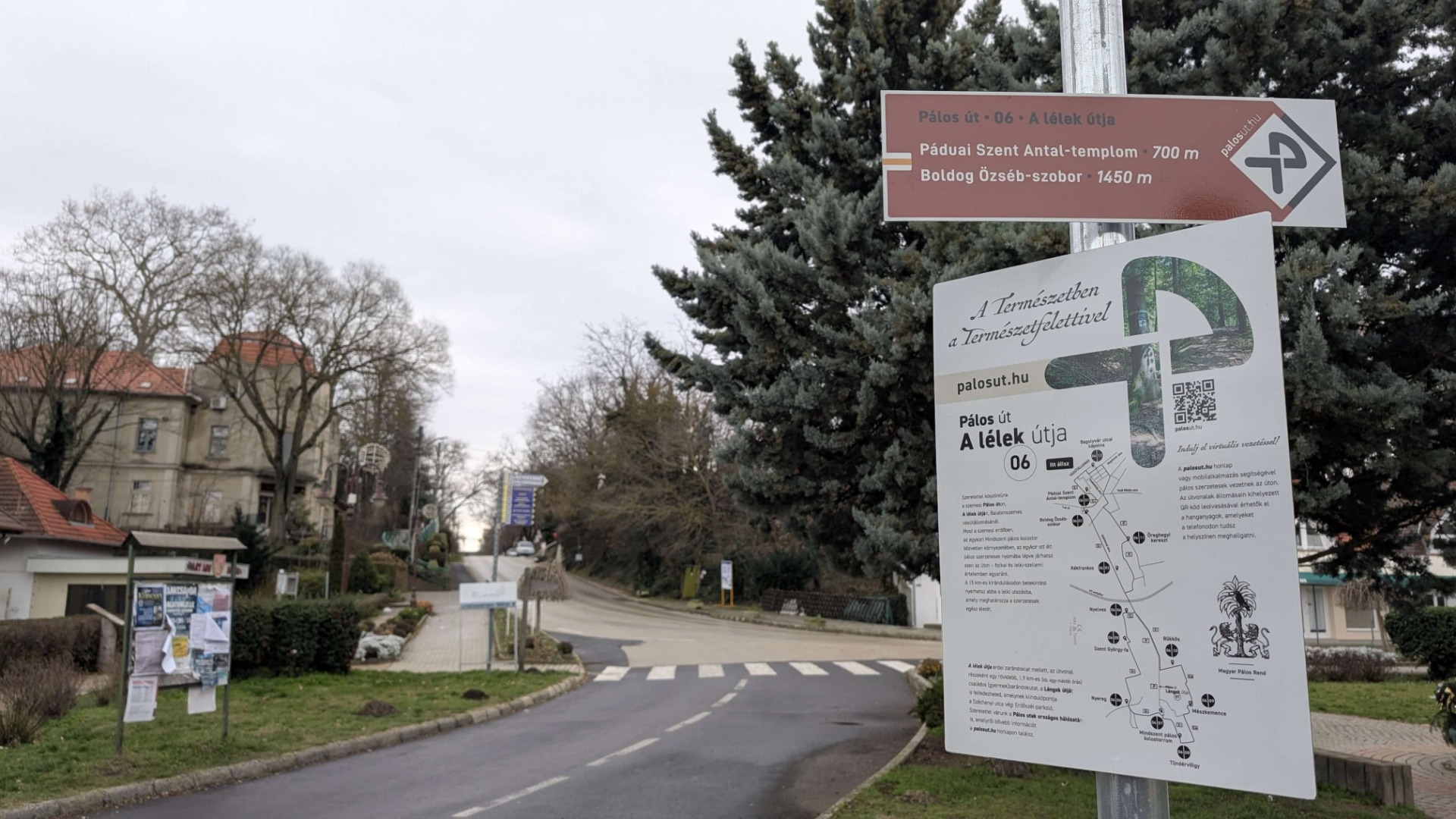 Pár perc múlva újra találkozunk a Lángok útjával. 1,1 kilométeres szakaszon a családi út állomásai között gyalogolunk a tágas, ámde vízátmosásos úton. Az állomások megjelenésükben is elkülönülnek, továbbá szinte mindegyik mellett már korábban felállított információs táblát találunk, amelyeken a pálosok történelmét ismerhetjük meg jobban.