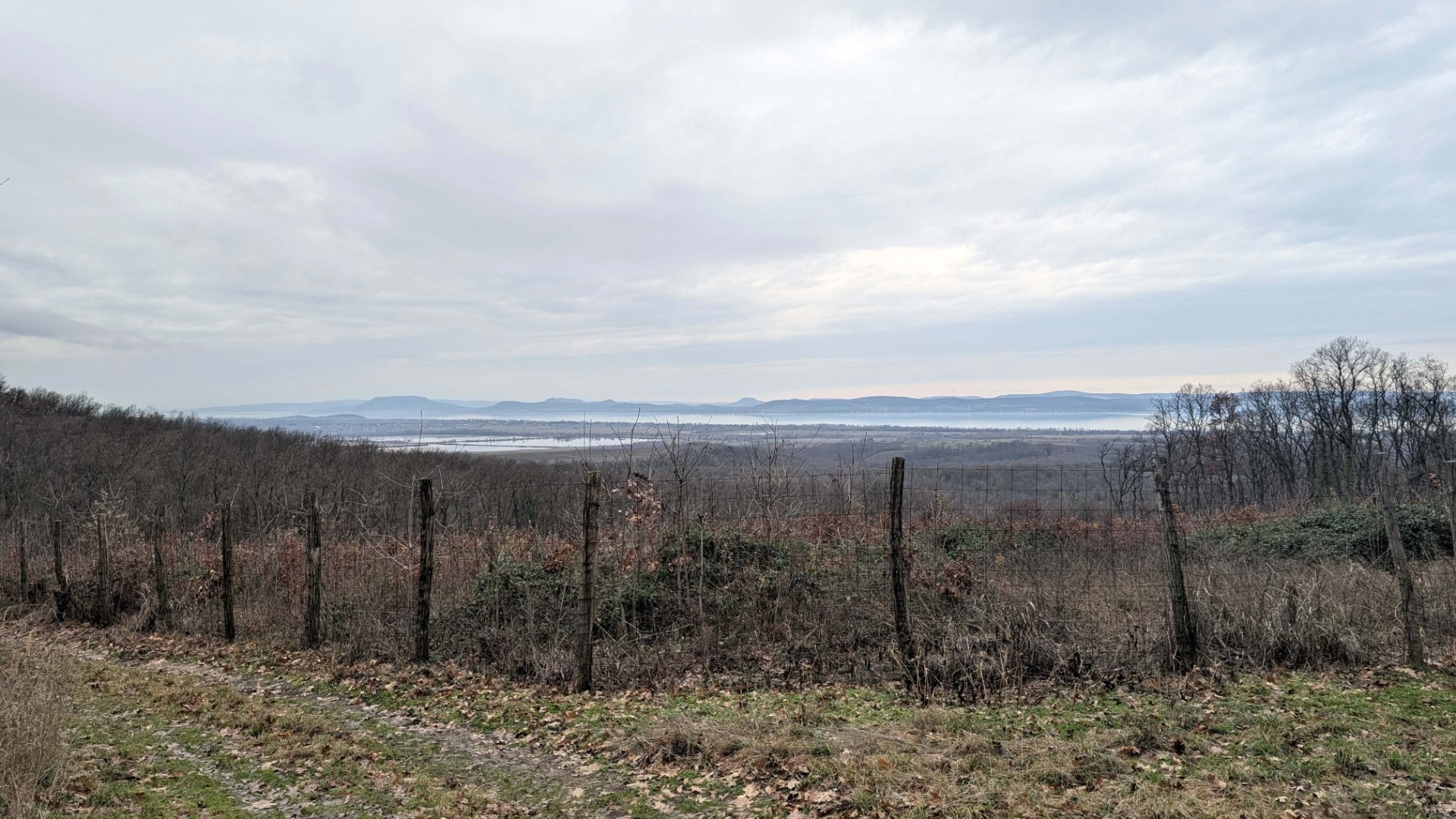 Vadcseresznyefák között térünk át a sárga háromszög jelzésű, még mindig széles erdészeti ösvényre. 3-5 perc elteltével csodálatos panoráma tárul a szemünk elé. Hála a kivágott fás résznek, egy kereszteződésnél még a párás időben is könnyedén látjuk a Balatont, a távolban kimagasló Badacsonyt és tanúhegyeket, illetve ha jó szögben állunk akkor a Fonyód közepén magasodó hegyet is. Felfigyelhetünk a Balatonlelle és Balatonszemes közötti halastavakra és mocsárvidékre.