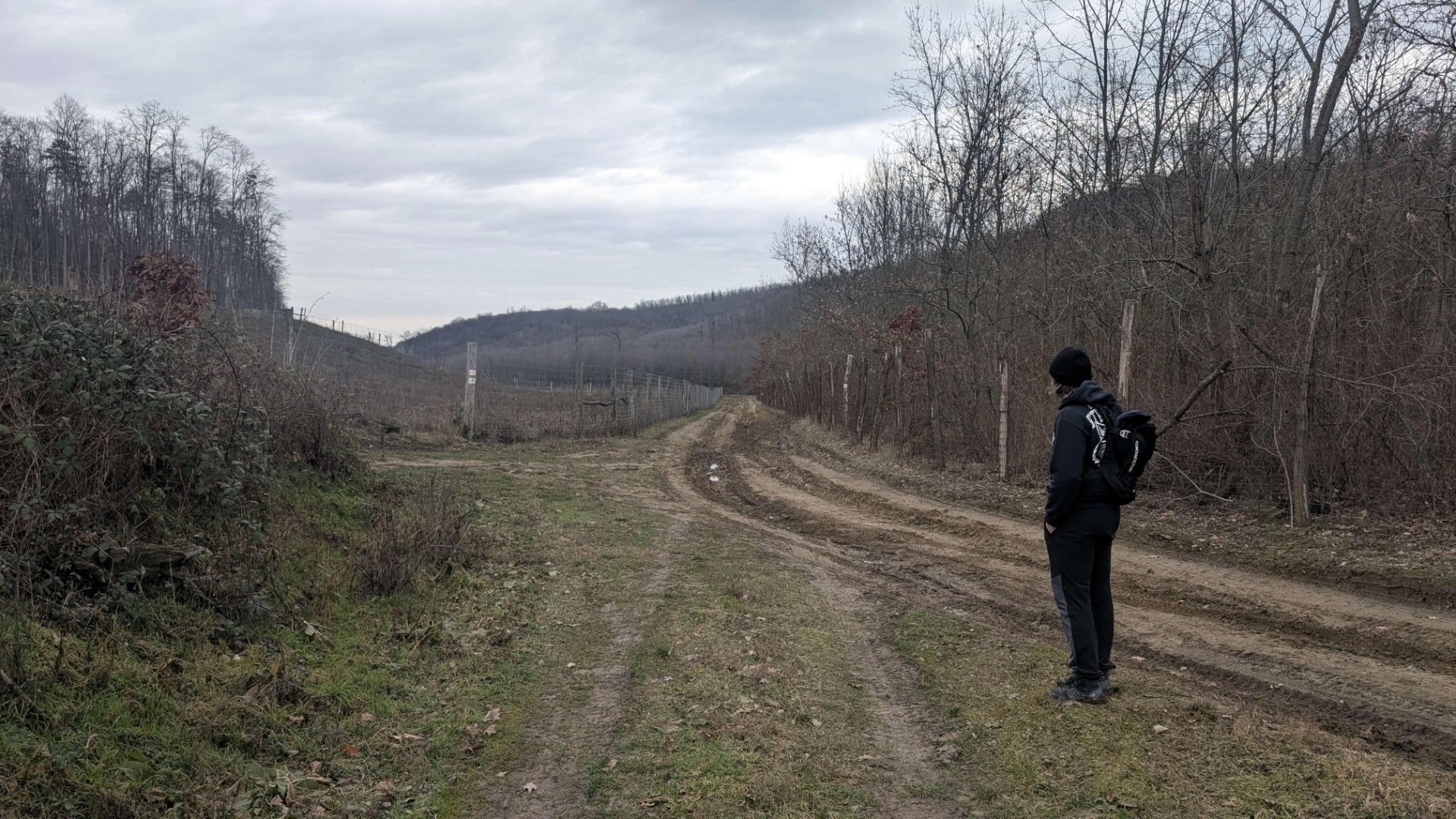 Letérünk az aszfaltos útról, jobb kéz felé egy sorompóval elzárt erdei területre. Ettől a kereszteződésnél kicsit beljebb egy szebb napokat is látott zöld fabódé segítheti még a tájékozódásunkat.