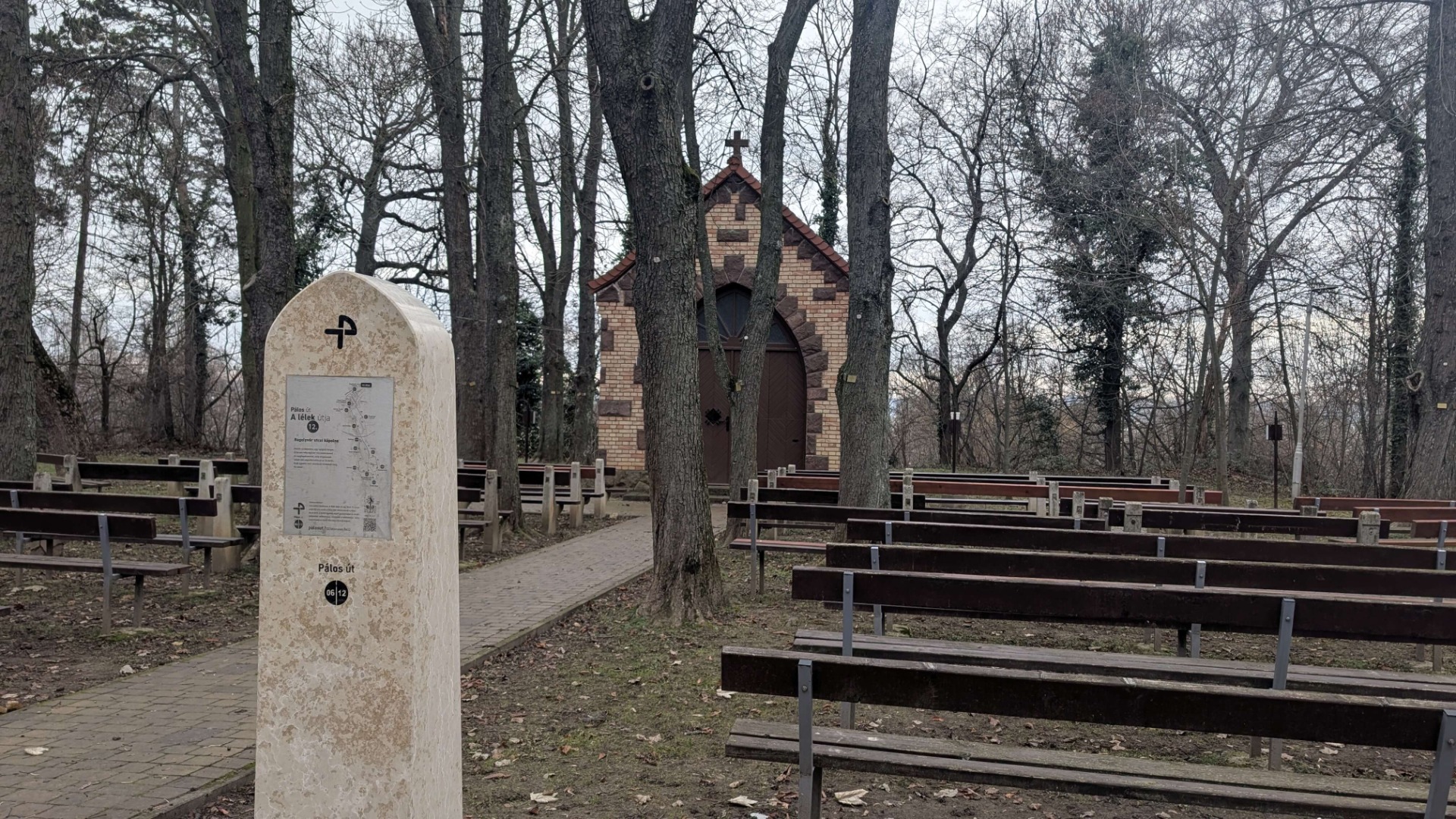 Pár lépés múlva találjuk a negyedik állomásunk fa obeliszkjét. A bennünk lévő falak lebomlásáról olvashatunk elgondolkodtató szöveget.